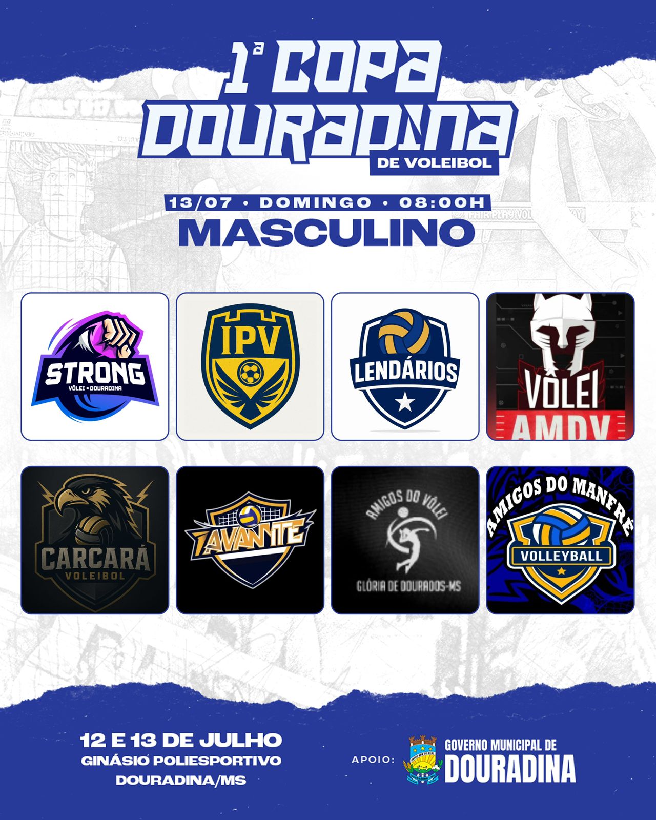 A 1ª Copa Douradina de Voleibol conta com o apoio oficial do Governo Municipal de Douradina/MS e tem como patrocinadores empresas locais que acreditam no desenvolvimento do esporte na região: